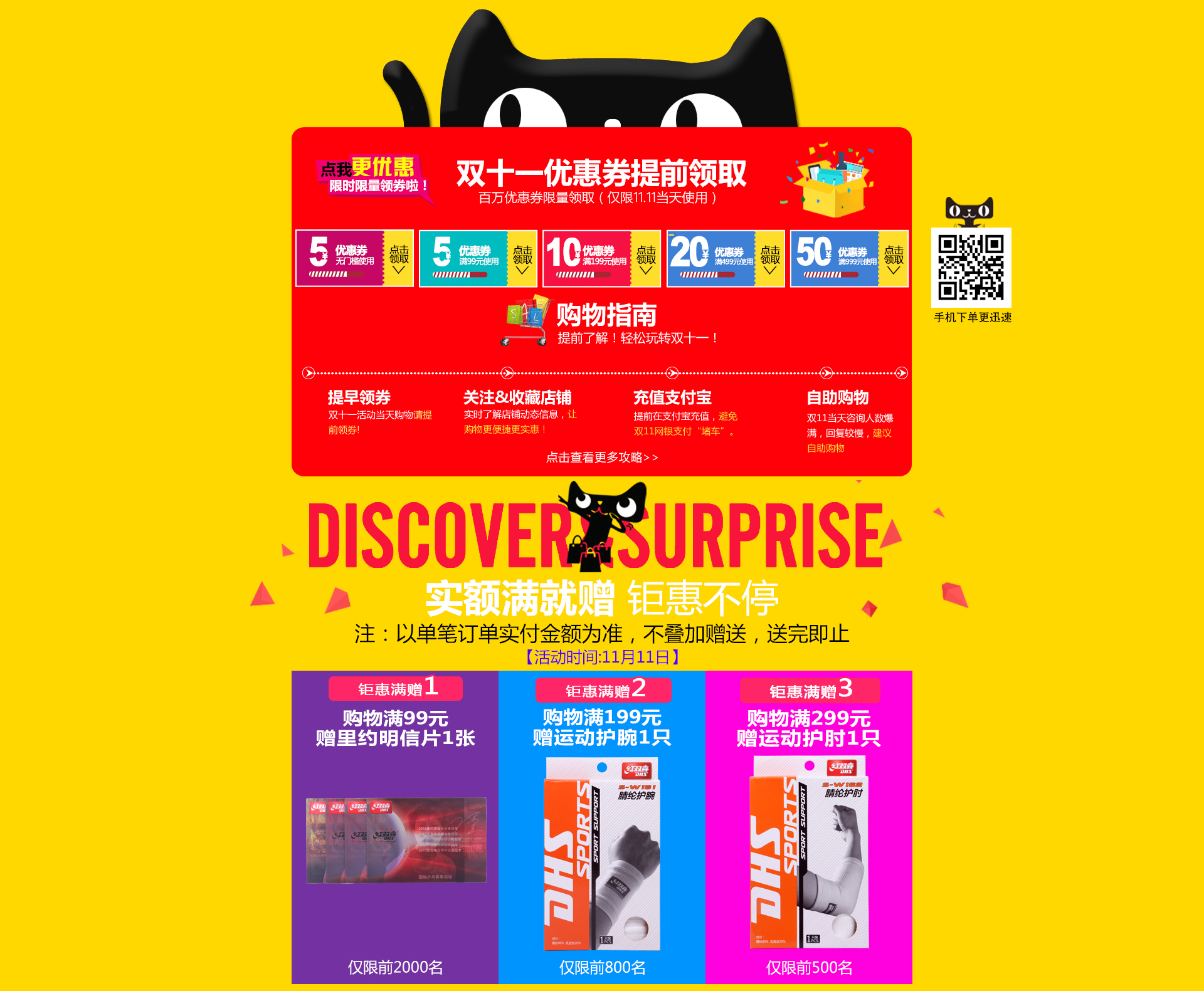 双十一当天,红双喜官方旗舰店的前500名、800名及2000名顾客,购买任意产品满额就会送出红双喜的精致小礼品一份,先到先得哟!